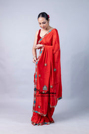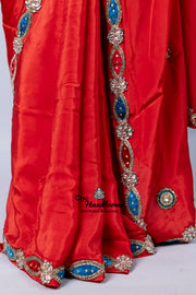 Pure Crepe Silk Handloom Banarasi Saree with Handwork