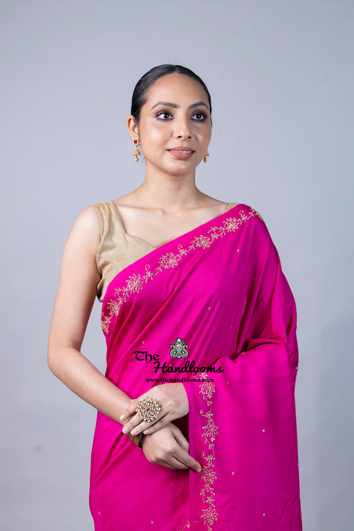 View full detailsElevate your style with our exquisite Hot Pink Khaddi Georgette Handloom Banarasi Saree. Made with intricate handwork, this saree features Gota P...