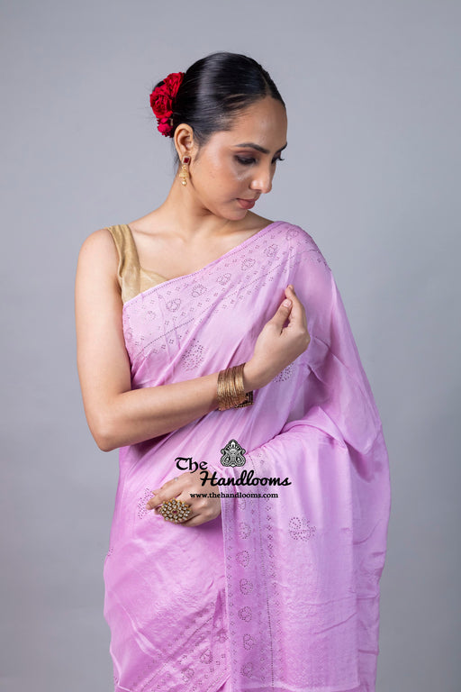 View full detailsExpertly crafted by skilled artisans, this Pure Georgette Banarasi Bandhej Handloom Saree features intricate handwork including Gota Patti, Zardo...