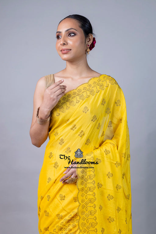 View full detailsExperience the elegance and luxury of our Pure Georgette Handloom Banarasi Saree with Siroski Stone Work. Made from the finest quality materials ...