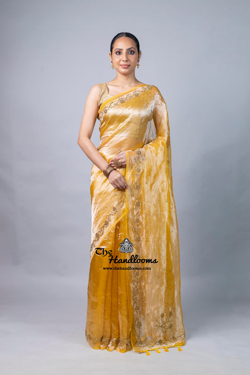 View full detailsElevate your wardrobe with this Tissue Silk Banarasi Saree, a refined blend of traditional craftsmanship and lightweight elegance. Woven with delic...
