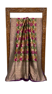 Experience the elegance of tradition with this Multicolor Pure Katan Silk Banarasi Handloom Saree. Crafted from premium Katan silk, it features intricate all-over jaal work that highlights the skill of Banarasi artisans. The detailed rangkart adds depth and vibrancy to the design, making it a timeless piece suitable for special occasions. Its rich texture and vibrant colors ensure a luxurious drape that enhances your presence gracefully. Ideal for connoisseurs of fine handloom textiles seeking authenticity and sophistication.