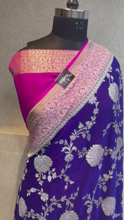 Khaddi Georgette Handloom Banarasi Saree - All over sona roopa Jaal Work
