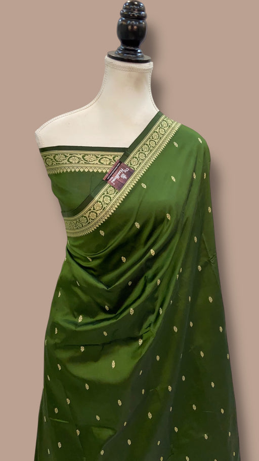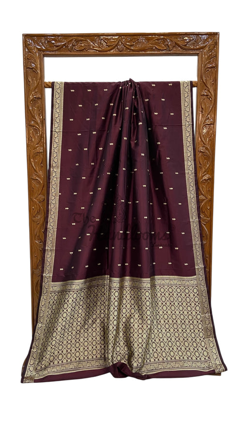 View full detailsExperience the timeless elegance of the Pure Katan Silk Banarasi Handloom Saree, featuring intricate all-over Kadiyal Boota motifs. Crafted from pr...