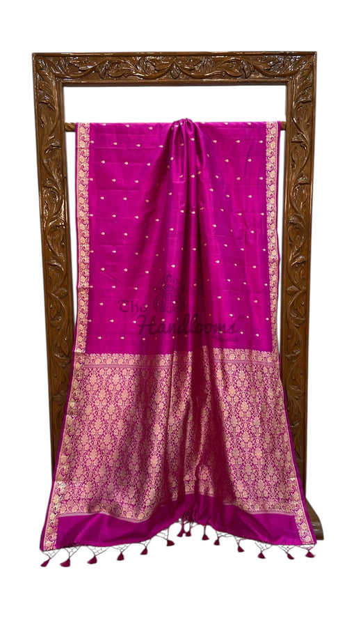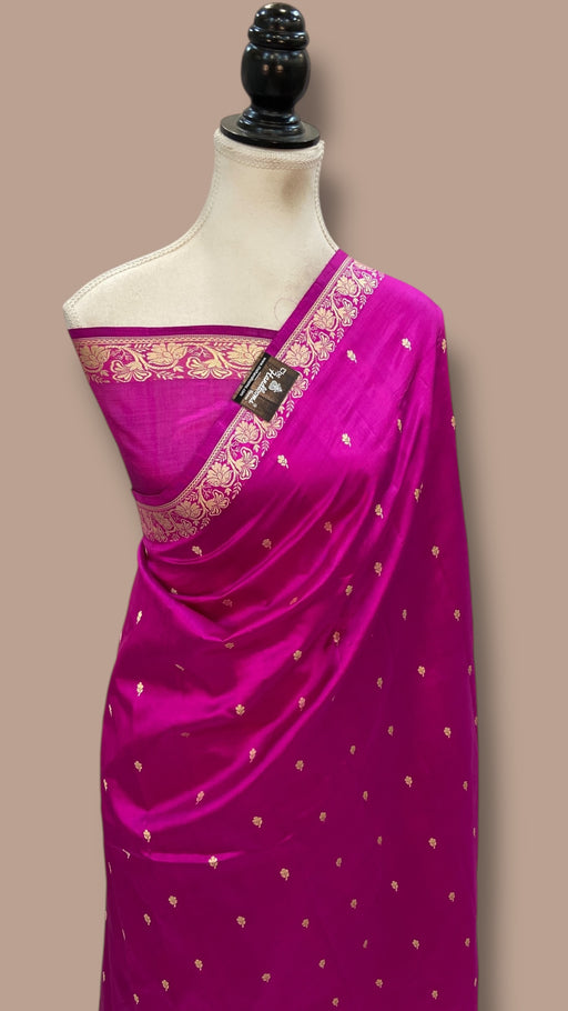 View full detailsExpertly crafted with pure Katan silk and intricate Reshmi Zari work, our Banarasi Handloom Saree exudes luxury and elegance. Experience the smo...