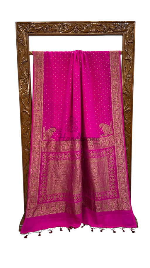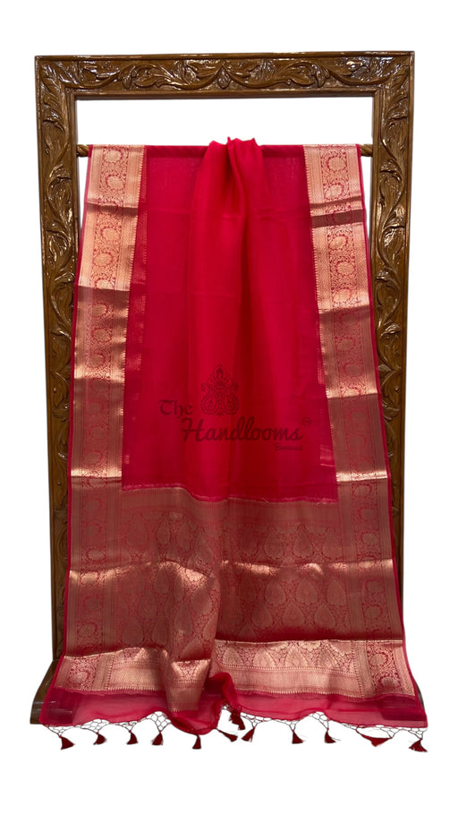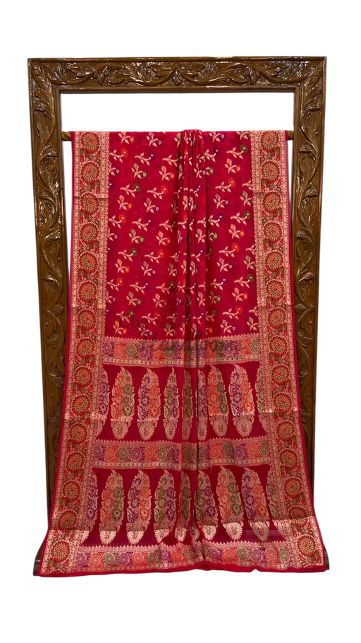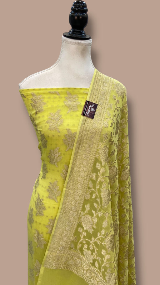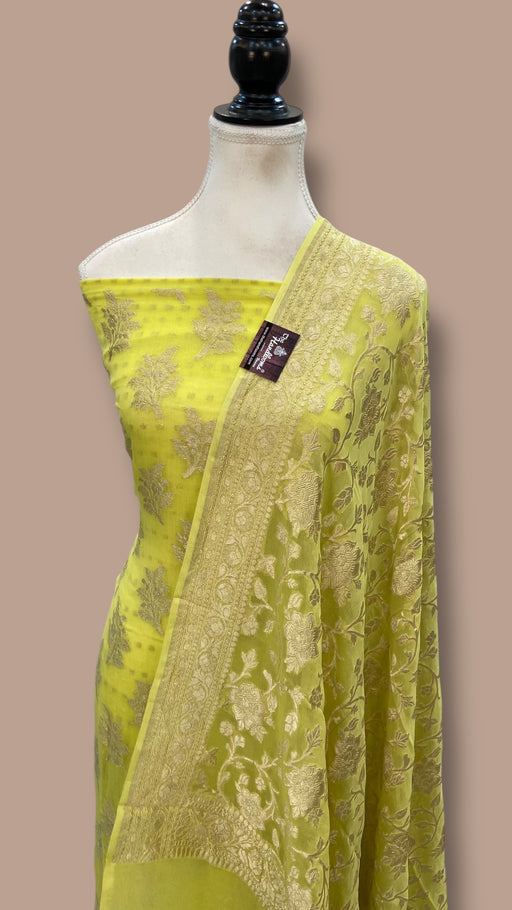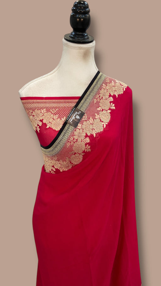 View full detailsExperience the elegance of tradition with this Pure Georgette Handloom Banarasi Saree, featuring intricate handwork lace. Crafted from lightweigh...