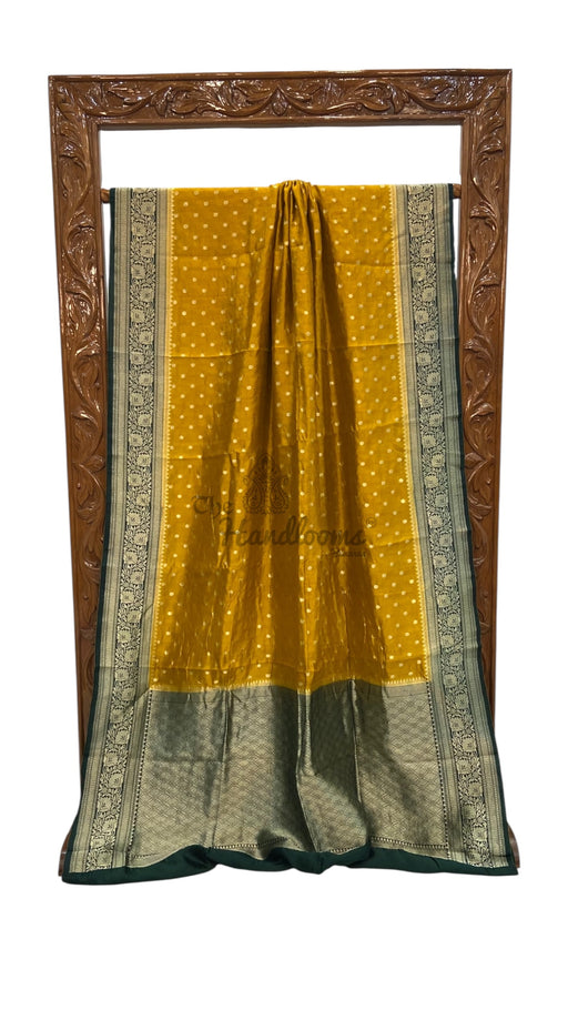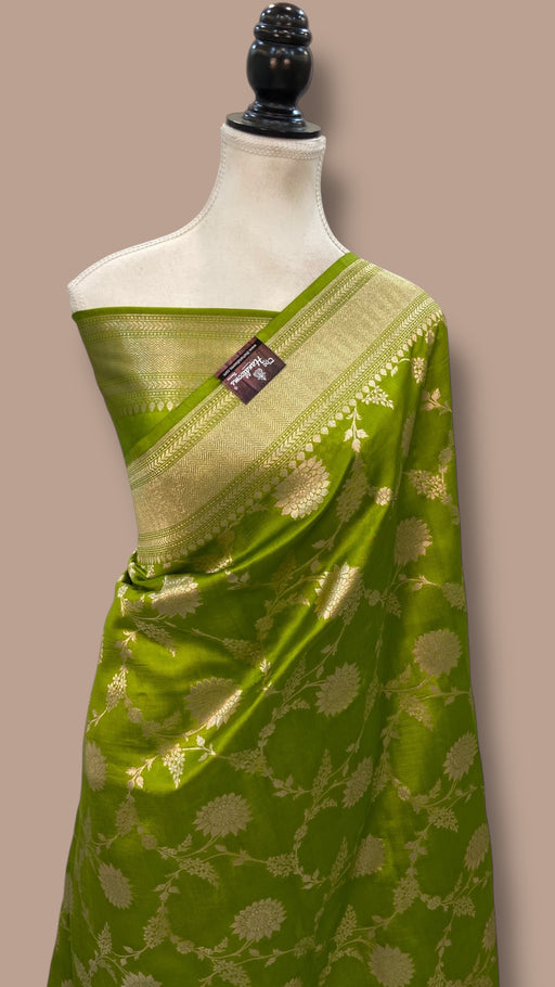 View full detailsIndulge in the exquisite charm of tradition with this Pure Mango Silk Banarasi Handloom Saree, crafted to perfection by skilled artisans. The rich,...