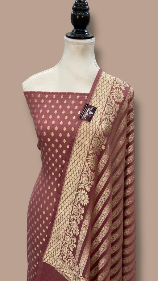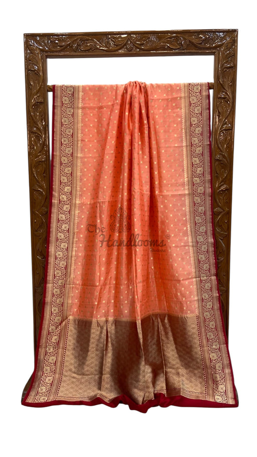 View full detailsCrafted from luxurious moonga georgette, this handloom Banarasi saree exemplifies traditional weaving mastery. The delicate fabric drapes with et...