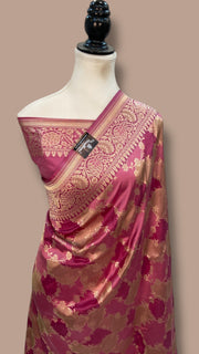• This Pure Katan Silk Banarasi Handloom saree features intricate all over Jaal work, beautifully complemented by a Rangkart design. Made from high quality silk, this saree offers a luxurious feel and elegant drape. Elevate your style with this timeless and handcrafted piece