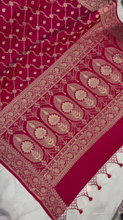 • Design: Traditional Banarasi handloom with intricate floral and paisley patterns