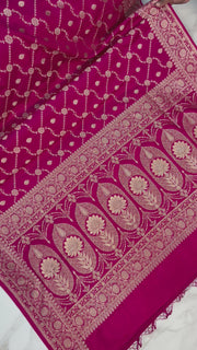 • Design: Traditional Banarasi handloom with intricate floral and paisley patterns