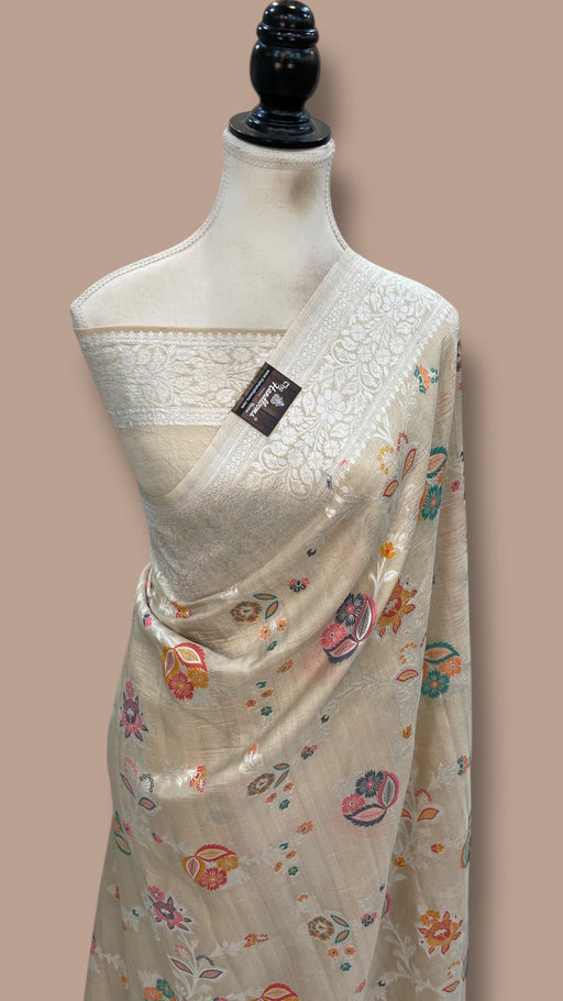 Tussar Georgette Handloom Banarasi Saree - All over Jaal Work with six color meenakari
