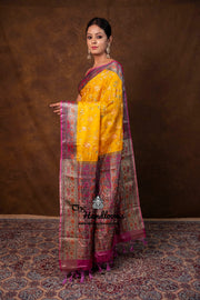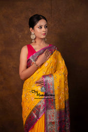 Yellow Pure Tussar Silk Handloom Banarasi Saree With Chikankari