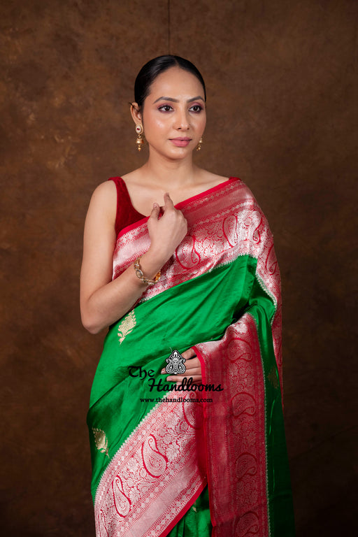 Technique - Classic handwoven Banarasi Jangla art passed down through generations of weavers Fabric - Soft as butter, pure Katan silk with ce...