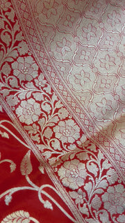 Red Pure Katan Silk Banarasi Handloom Saree - All over Sona Roopa Jaal work