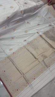 White Pure Katan Silk Banarasi Handloom Saree - All over Kadua motifs With Meenakari