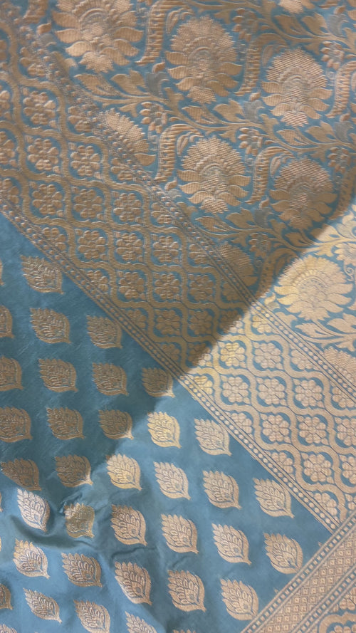 • Speciality - The glorious outline of kadua border lovingly handwoven on a base of resplendent silk in Sona or Gold zari kadua motifs. Incredible in its details and a mirror to the splendour of Banaras.