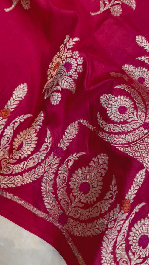 Red Pure Katan Silk Banarasi Handloom Saree - All over Jaal work - With Meenakari