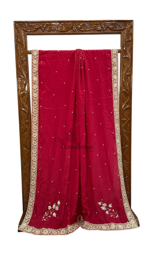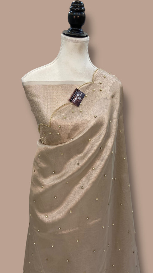 View full detailsElevate your style with our exquisite Khaddi Georgette Handloom Banarasi Saree. Made with intricate handwork, this saree features Gota Patti, Za...