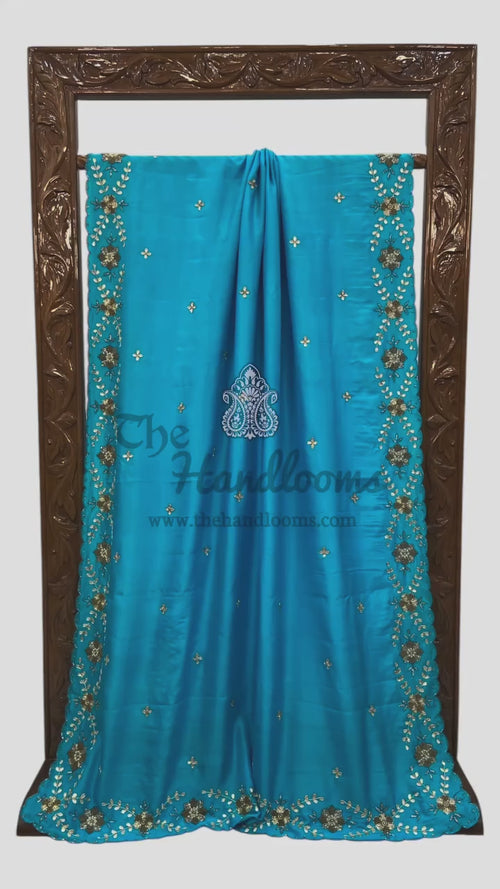 Pure katan Silk Handloom Banarasi Saree with Handwork: Zardozi, Diamond Chain, Katdana, and Abla Detailing