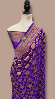 Pure Khaddi Georgette Handloom Banarasi Saree - Copper Zari