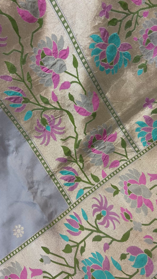 Pure Katan Silk Banarasi Handloom Saree - All over Sona Roopa Kadua motifs