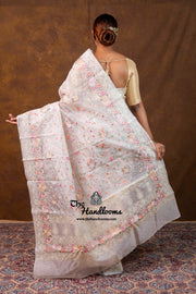 White Pure Organza Chikankari Handloom Banarasi Saree