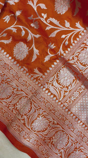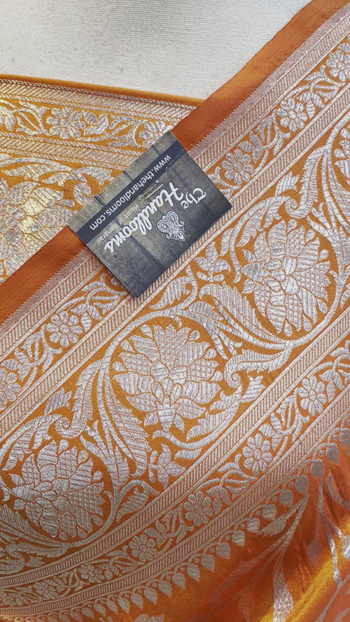 Orange Pure Katan Silk Banarasi Handloom Saree - Silver Zari