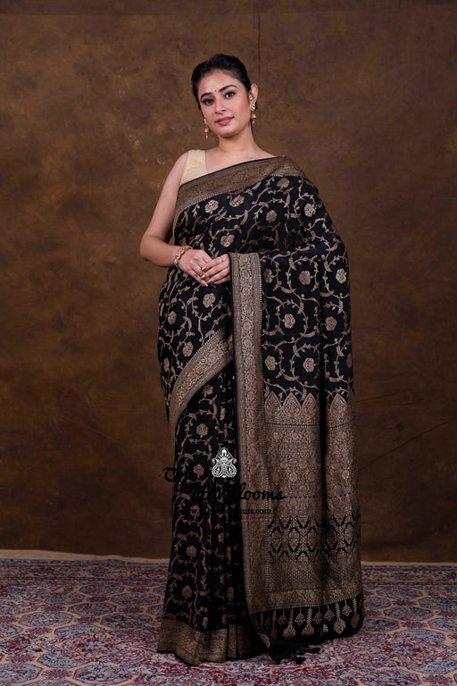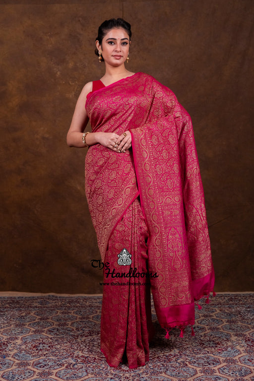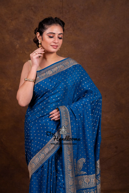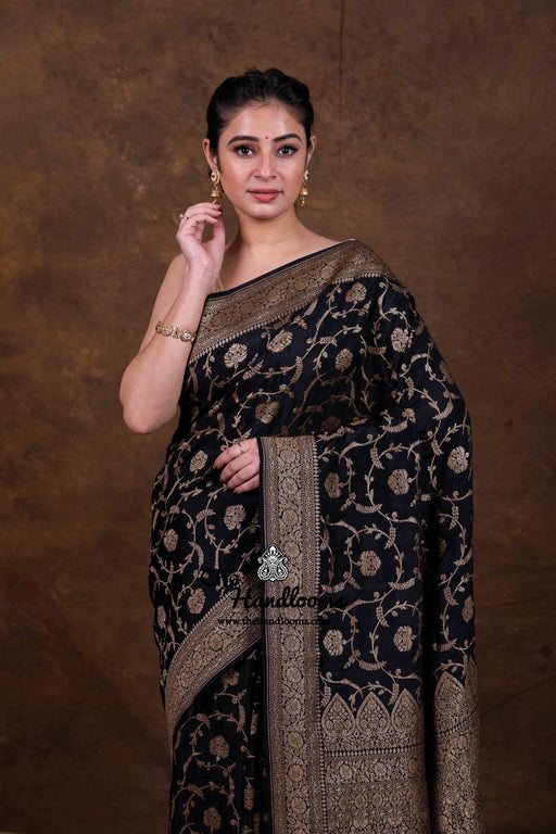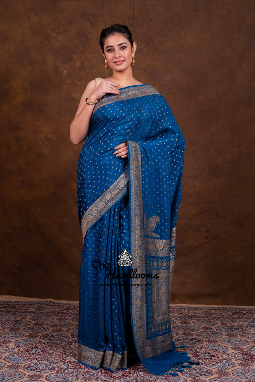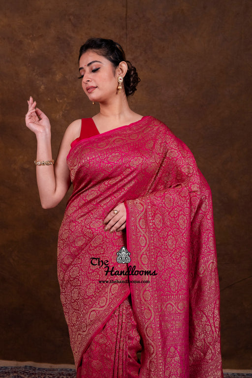 Khaddi Georgette Antique Zari Sarees from The Handlooms are a timeless tribute to Banarasi craftsmanship. Each saree is handwoven in Banaras using pure silk georgette and adorned with antique gold and silver zari. Perfect for weddings, festive occasions, or heirloom gifting, these drapes speak of elegance and legacy.