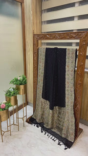 Elevate your style with our exquisite Black Khaddi Georgette Handloom Banarasi Saree. Made with intricate handwork, this saree features Gota Patti, Zardozi, Diamond Chain, Katdana, and Abla detailing, adding a touch of elegance and luxury. Crafted with premium quality khaddi georgette, this saree offers comfort and sophistication, making it a must-have for any occasion