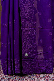 Pure Georgette Chikankari Handloom Banarasi Saree