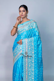 Tussar Silk Handloom Banarasi Saree With Chikankari