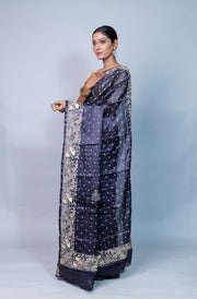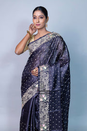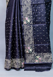Tussar Silk Handloom Banarasi Saree With Chikankari