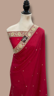 Pure Crepe Silk Handloom Banarasi Saree with Handwork