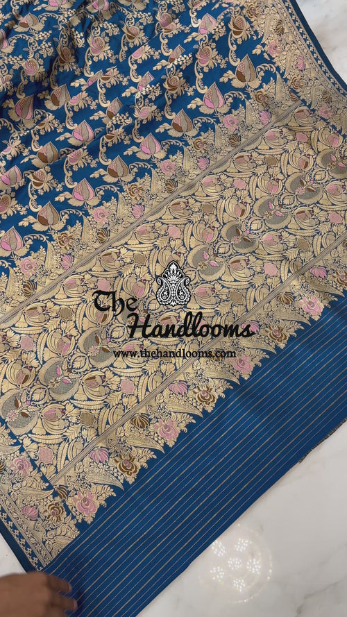 Deepika Padukonen in German Blue Pure Katan Silk Banarasi Handloom Saree - All over Jaal work with Meenakari