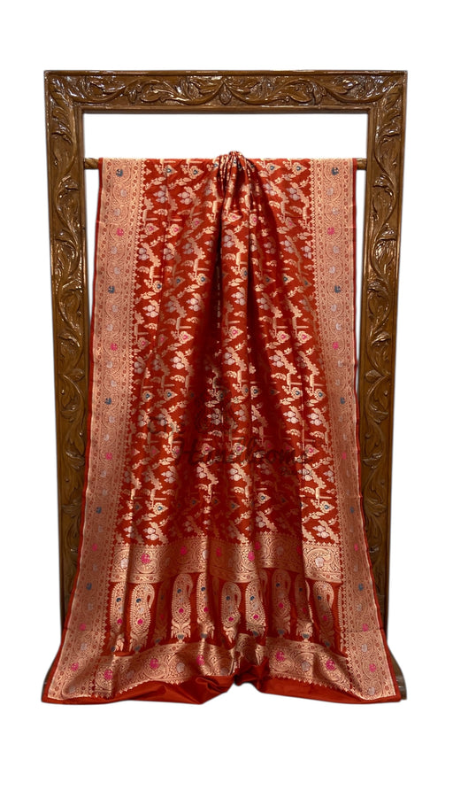 Regal Pure Katan Silk Banarasi Saree – Handwoven Tanchui Brocade with Meenakari Work