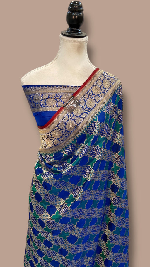 View full detailsTechnique - Classic handwoven Banarasi Jangla art passed down through generations of weavers Fabric - Soft as butter, pure Katan silk with c...
