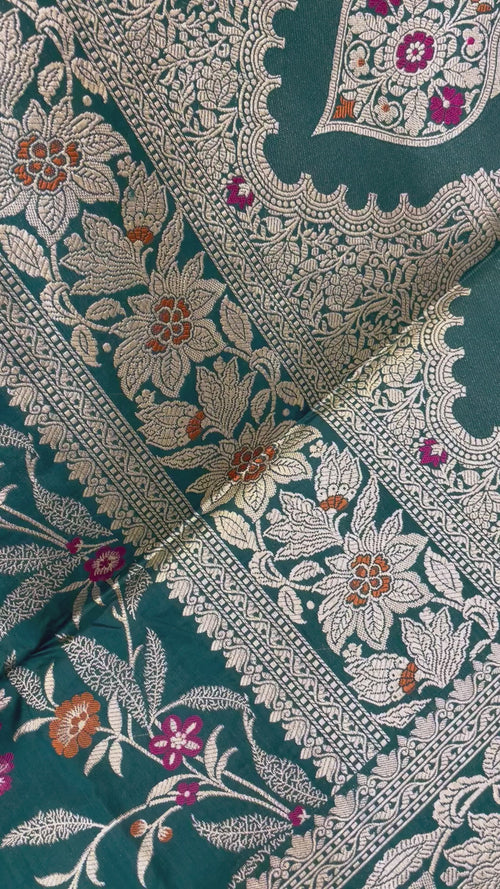 Pure Katan Silk Banarasi Handloom Saree - All over Jaal work with Meenakari