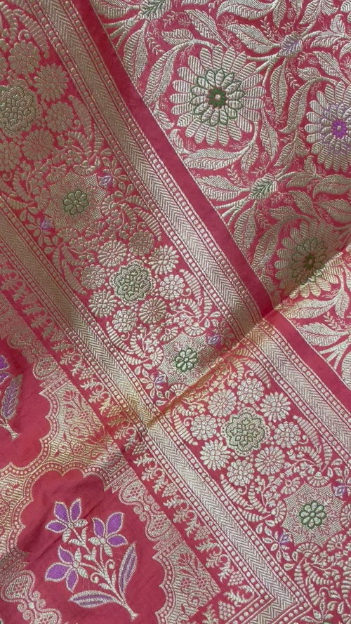 Pure Katan Silk Banarasi Handloom Saree - All over Jaal work with Meenakari