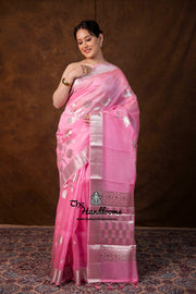 Pink Pure Kora Silk Handloom Banarasi Saree