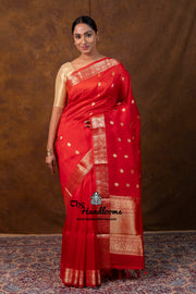 Red Pure Kora Silk Handloom Banarasi Saree