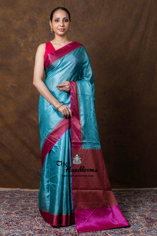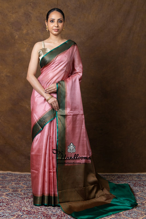 View full detailsCrafted from pure tussar silk, this Banarasi saree exemplifies centuries-old weaving mastery. The meenakari embellishment—intricate enamel-work i...