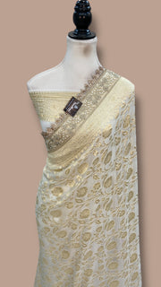 Khaddi Georgette Handloom Banarasi Saree With Lace Work