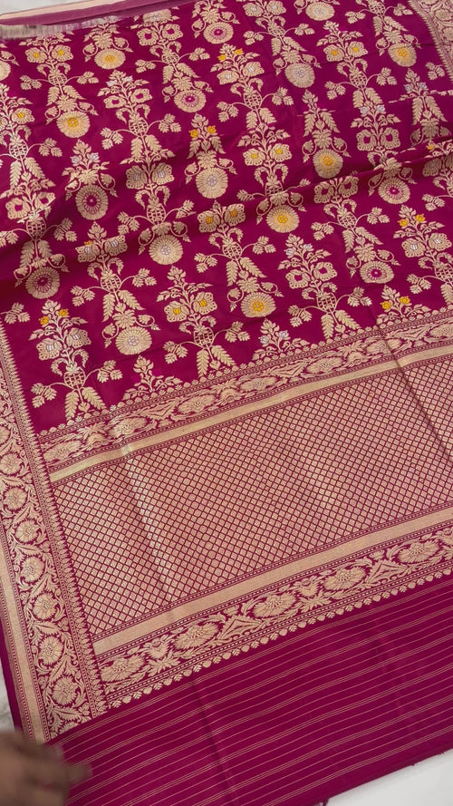 Pure Katan Silk Banarasi Handloom Saree - All over kadiyal Jaal work