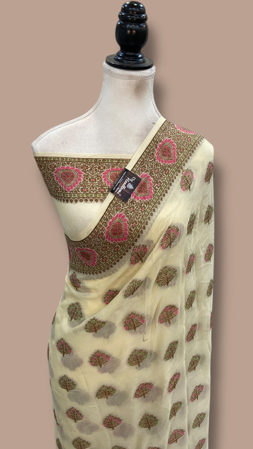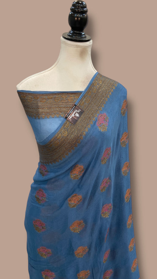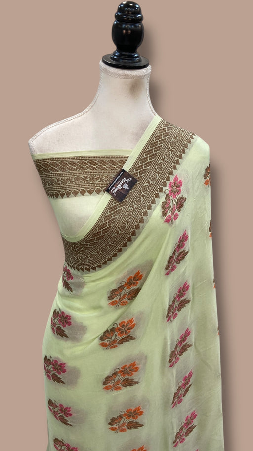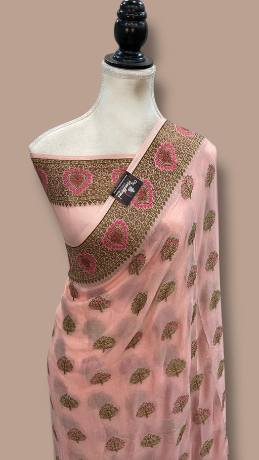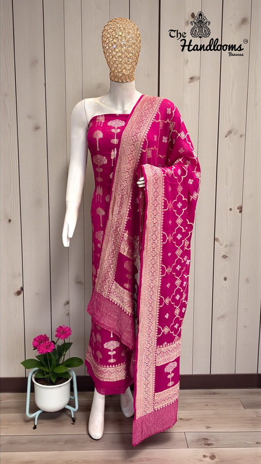 View full detailsElevate your wardrobe with this exquisite Khaddi Georgette Banarasi dress material, a masterpiece of traditional Indian weaving. Crafted from premi...