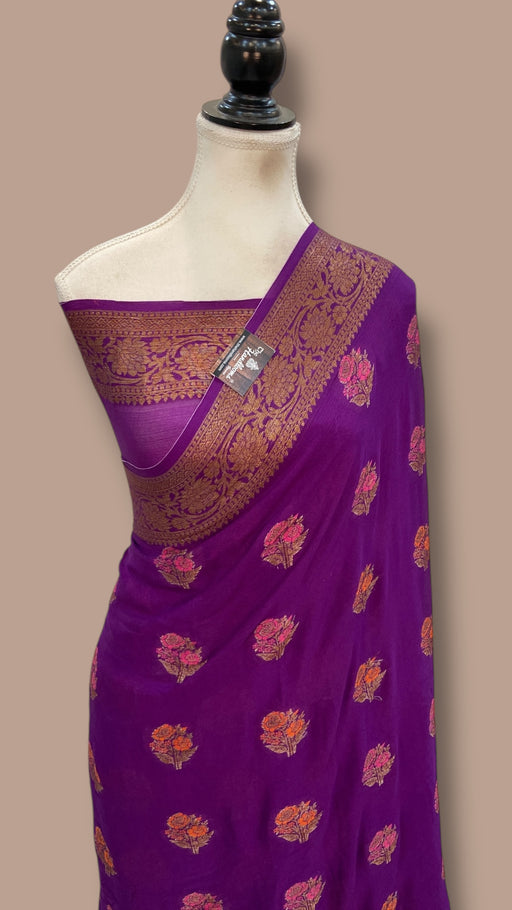 View full detailsExpertly crafted from pure katan silk using traditional handloom techniques, this Purple Banarasi saree features exquisite all-over motifs. With...