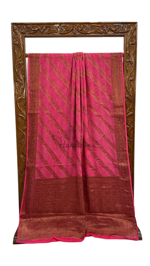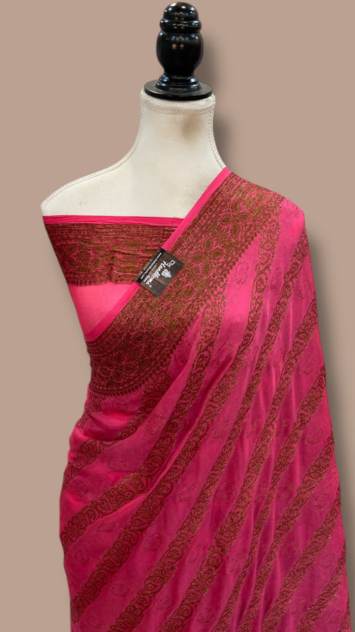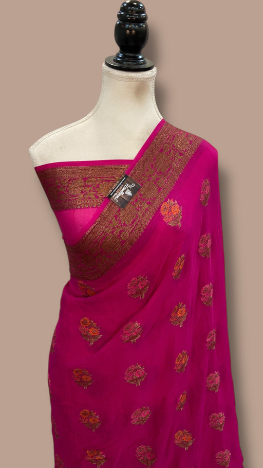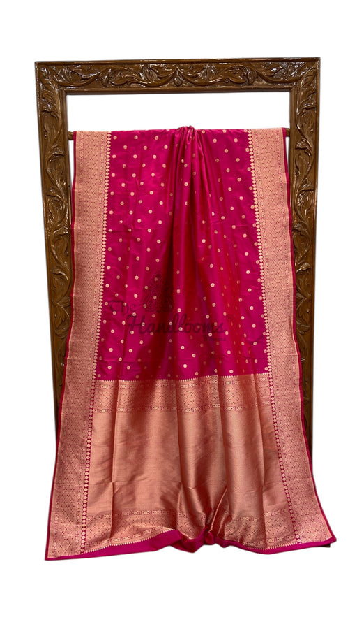 View full detailsExpertly crafted from pure katan silk using traditional handloom techniques, this Hot Pink Banarasi saree features exquisite all-over motifs. Wi...