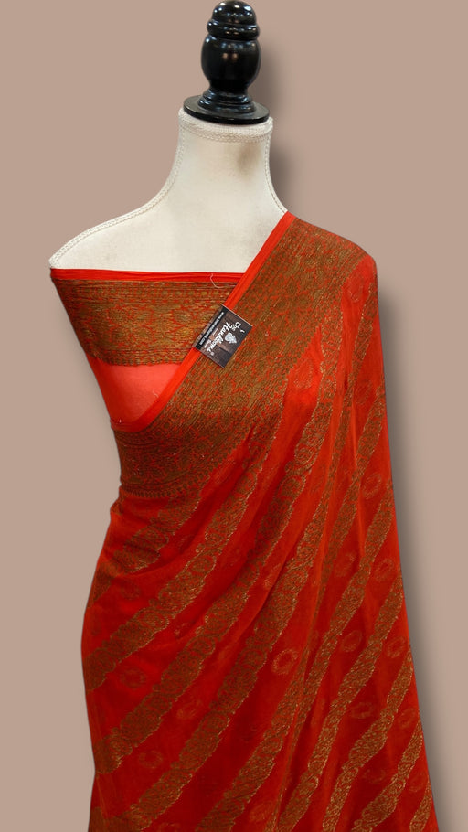 View full detailsTechnique - Classic handwoven Banarasi Jangla art passed down through generations of weavers Fabric - Soft as butter, pure Katan silk with ce...