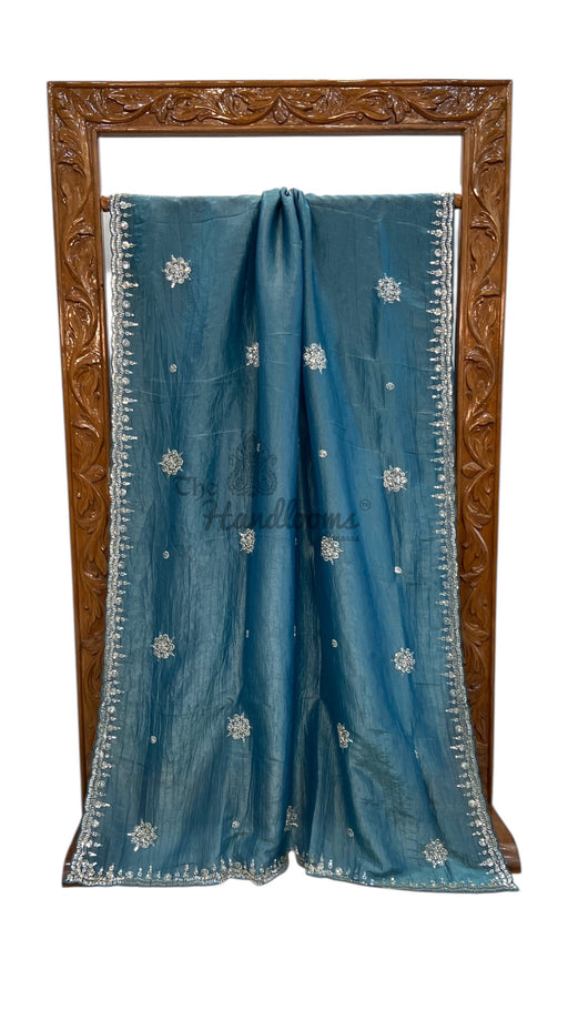 Elevate your festive wardrobe with this opulent handwoven Banarasi saree in pure Katan silk, adorned with Tanchui brocade work. Woven in the histor...