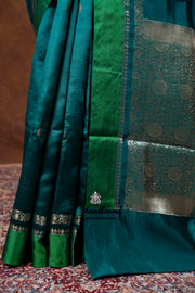• Design: Traditional Banarasi handloom with intricate floral and paisley patterns